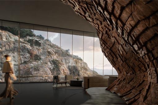 江蘇園博園珍寶博物館(以下簡稱珍寶館)位于江蘇園博園園區(qū)最北側(cè),功能為傳統(tǒng)和民間藝術(shù)及工藝品展示,建筑占地面積15000平方米,總建筑面積約15500平方米。珍寶館位于園博園邊緣的地塊有著極具沖突的周邊環(huán)境——北側(cè)緊鄰京滬高鐵線,不斷有高鐵穿梭而過;南側(cè)隔河相望為VOCO園博村酒店,是靜謐宜人的小尺度村落感公寓式酒店。城市和村莊在這個邊緣地塊碰撞。折疊,原本是地質(zhì)學中的概念——地殼運動擠壓巖層產(chǎn)生褶皺,形成折曲變化的肌理。項目所在地隸屬于湯山-方山地質(zhì)公園,其著名的六大地層剖面是地質(zhì)教學實習的經(jīng)典剖面。建筑從文脈上承載在地性的記憶,并由此引出“折疊”的設(shè)計理念,設(shè)計從地域、場地、路徑、材質(zhì)等多方面入手,思考建筑與場地的關(guān)系,規(guī)劃參觀與漫游的路徑,融入場所記憶和時間性,折疊概念的運用將這些思考串聯(lián)成為外在形態(tài)簡約、空間內(nèi)容豐富的整體。