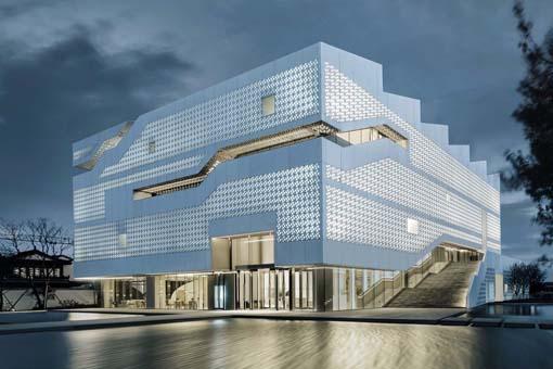 臨夏大劇院坐落于甘肅省臨夏市規(guī)劃新城的核心區(qū)域,用地面積52,300平方米,地上建筑面積 15,000 平方米,建筑總高度約 46 米。在建筑造型設(shè)計(jì)上,采用識別力強(qiáng)的簡潔幾何球體,配以經(jīng)典的比例形態(tài)及圖案紋理,但要把這樣精致且具象的造型放大成一個(gè)直徑90米、總高46米的公共建筑,無疑給設(shè)計(jì)師帶來了巨大的挑戰(zhàn)。